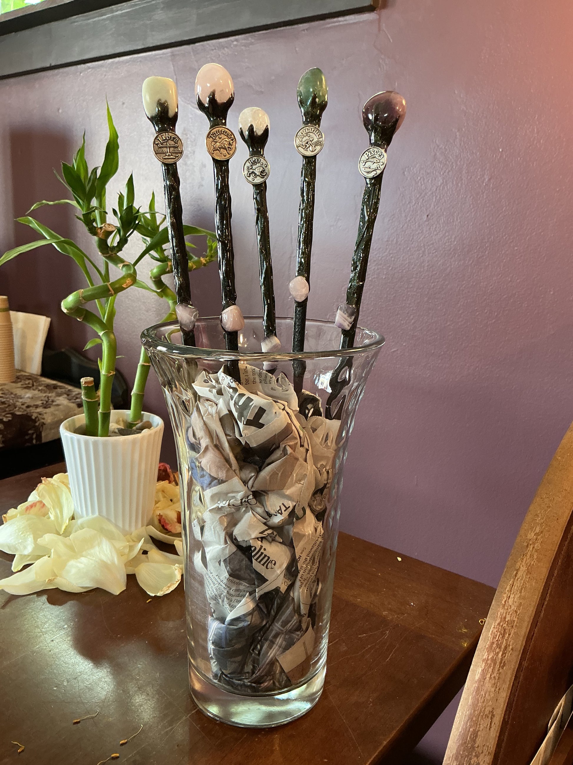 Varying stones with different zodiac signs for each wand.